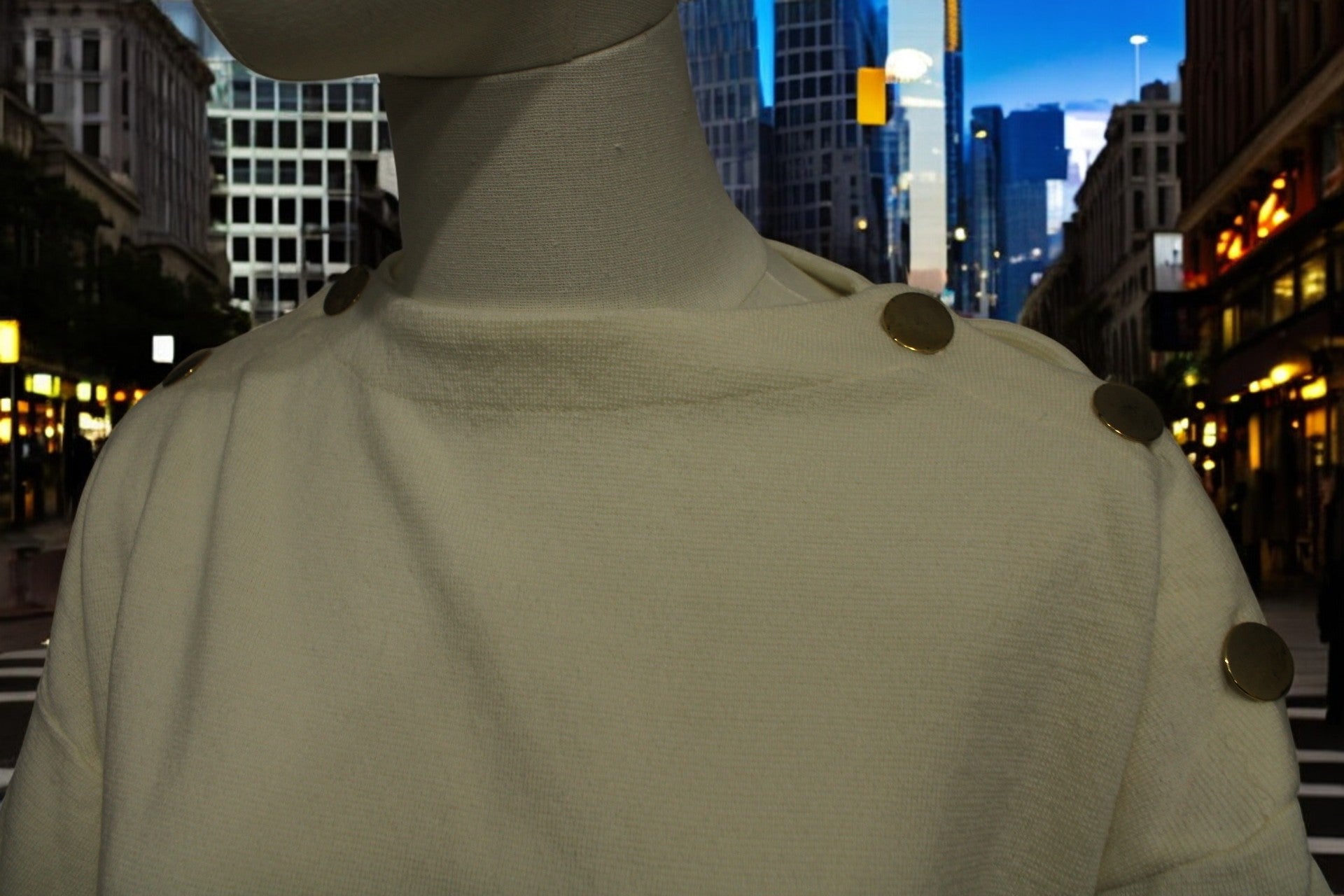 Elegante maglia m/lunga in 100% Lana Merinos con bottoni sulle spalle